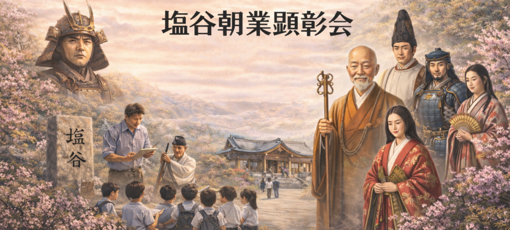 塩谷朝業顕彰会は、塩谷朝業公および塩谷家の歴史的功績を顕彰し、その文化的遺産を後世に正しく伝えることを目的として、調査研究、資料保存、顕彰行事、広報活動、親睦事業など多岐にわたる活動を行っております。