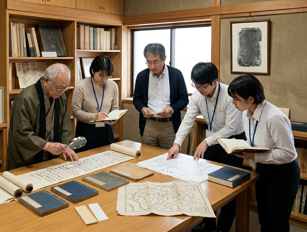 古文書、家系図、寺社縁起、石碑、墓所、地誌、古地図、和歌資料などを対象として調査を行い、史実の検証と体系的整理を進めます。