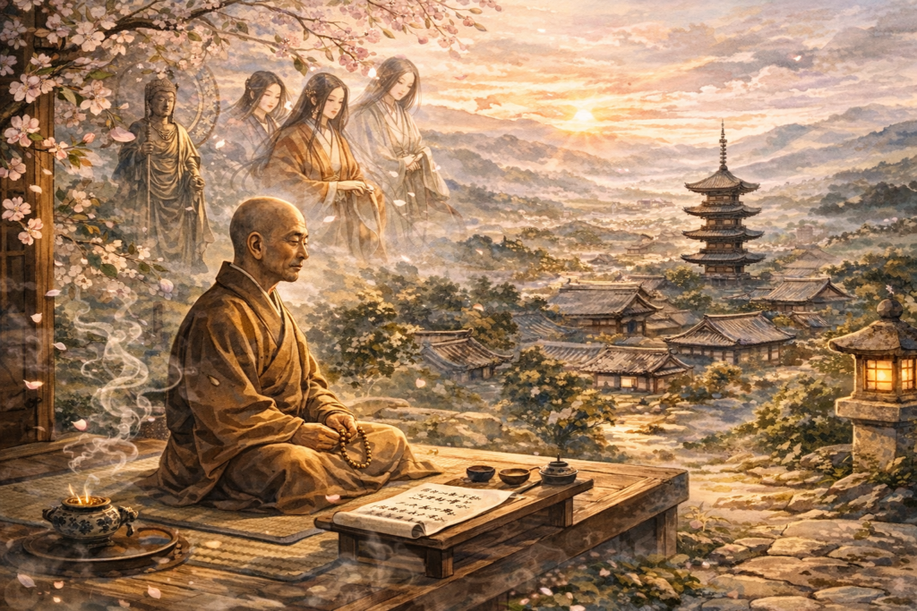 武士としての生活を送りながらも、朝業はやがて出家し、信生法師として生きる道を選びました。これは単なる身分の変化ではなく、人生の価値観そのものを変える大きな決断でした。